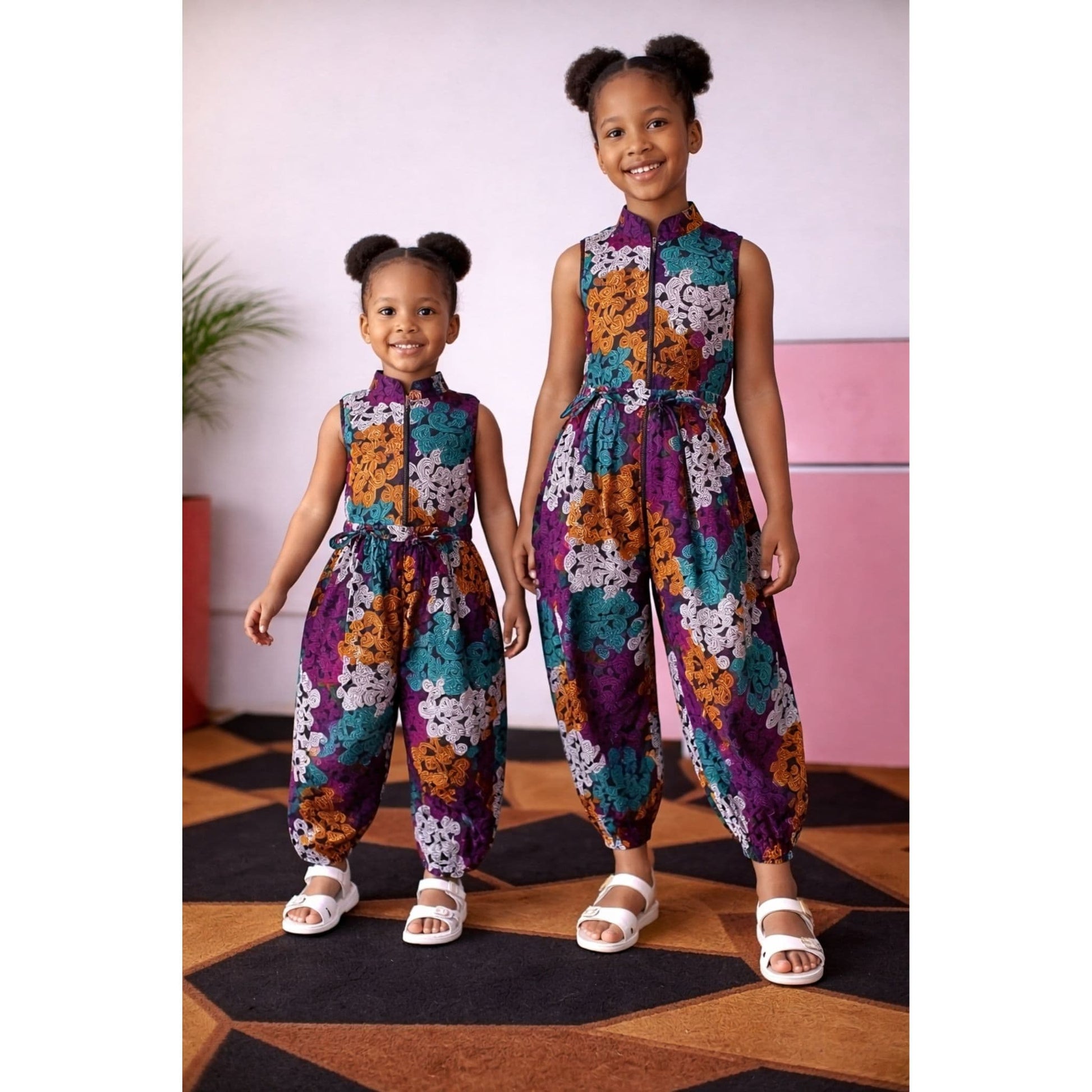 A playful yet elegant statement piece designed for little girls who love comfort with style. This Ankara elastic-leg jumpsuit features a beautifully tailored silhouette with a structured upper bodice and flowing style trousers, making it perfect for both everyday wear and special occasions. Thoughtfully designed to allow free movement while maintaining a polished look, this jumpsuit is ideal for birthdays, parties, cultural events, and stylish outings.