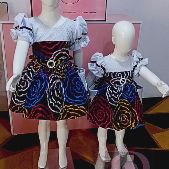 Girls African Print Dress – Puff Sleeve Occasion Outfit – Ready to Ship