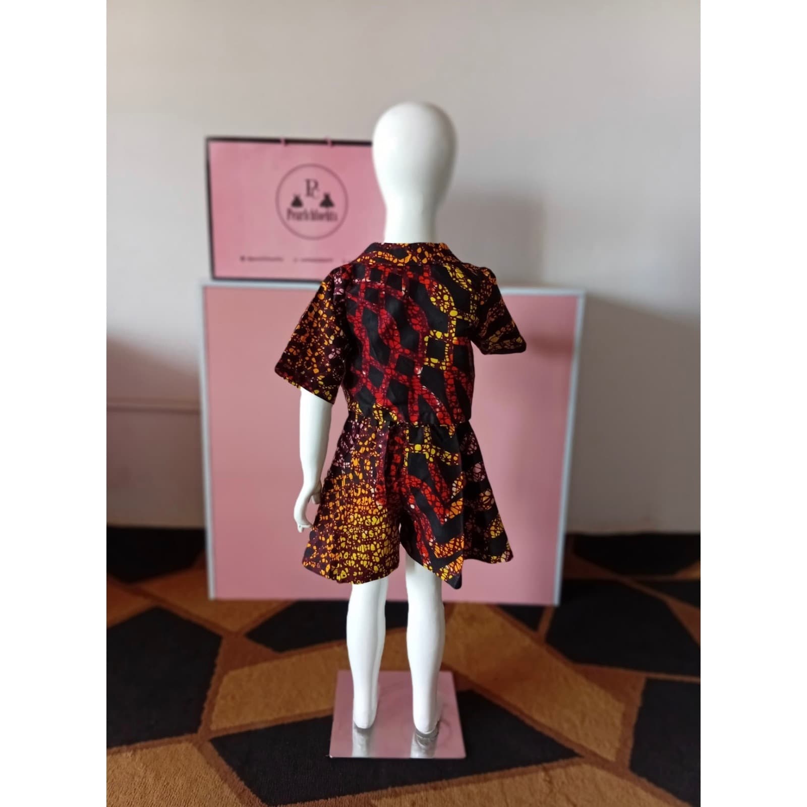 A stylish two-piece set designed for confident little girls who love comfort and colour. This African prints outfit features a button-up shirt and a beautifully tailored flared short, making it perfect for playdates, parties, and special outings.